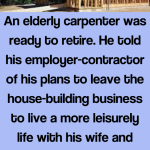 An elderly carpenter was ready to retire. He told his employer-contractor of his plans to leave the house-building business to live a more leisurely life with his wife and enjoy his extended family.