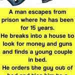 A few hours later the officer looked in on his prisoner and said, “Lucky for you that the chief’s at his daughter’s wedding… He’ll be in a good mood when he gets back.”