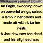 One afternoon a fox was walking through the forest and spotted a bunch of grapes hanging from over a lofty branch.
